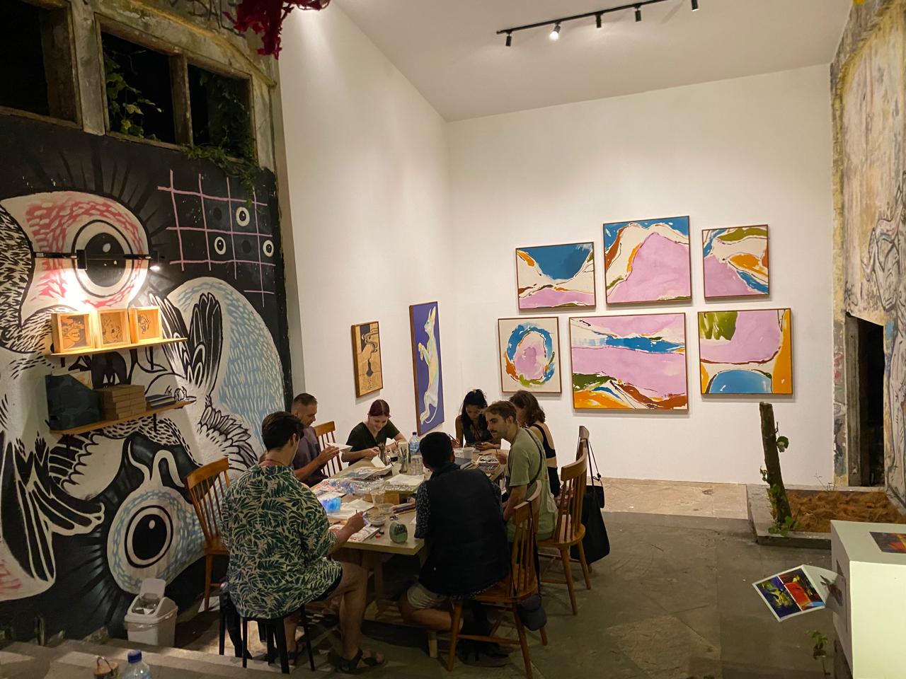 Mabiang Seni menghadirkan perjalanan komunitas seni: dari ruang tamu, meja makan komunal, hingga galeri. Lebih dari sekadar ruang pamer, ia mengundang interaksi langsung.