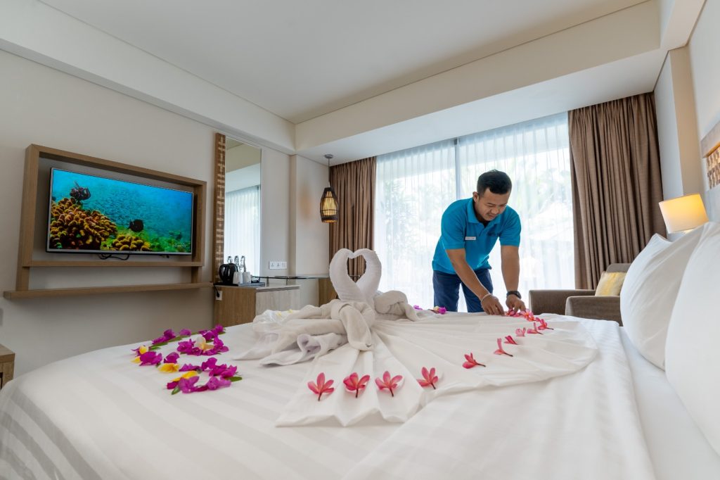Just a 15-minute drive from Bali’s Ngurah Rai International Airport, this hotel is the perfect base for your Bali adventure, offering 160 spacious rooms and suites with private balconies, plush bedding, modern amenities, and stunning views.