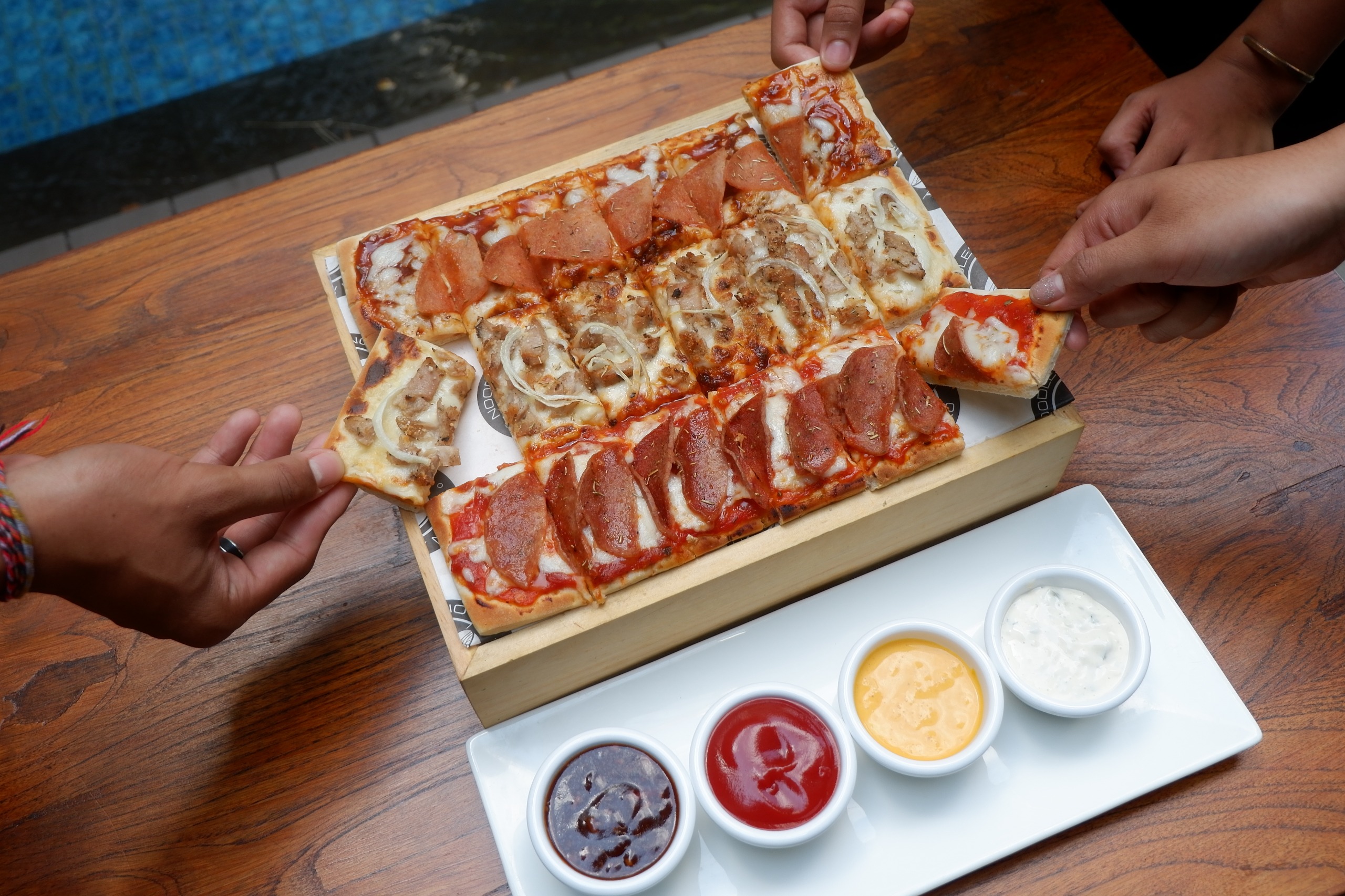 Kuliner terbaru ini diciptakan secara khusus oleh Sous Chef I Wayan Sutrawan. Pizza persegi panjang dengan 18 potongan ini menghadirkan tiga cita rasa istimewa dalam satu kotak, memberikan pengalaman kuliner yang seru dan pas dinikmati bersama keluarga maupun sahabat.