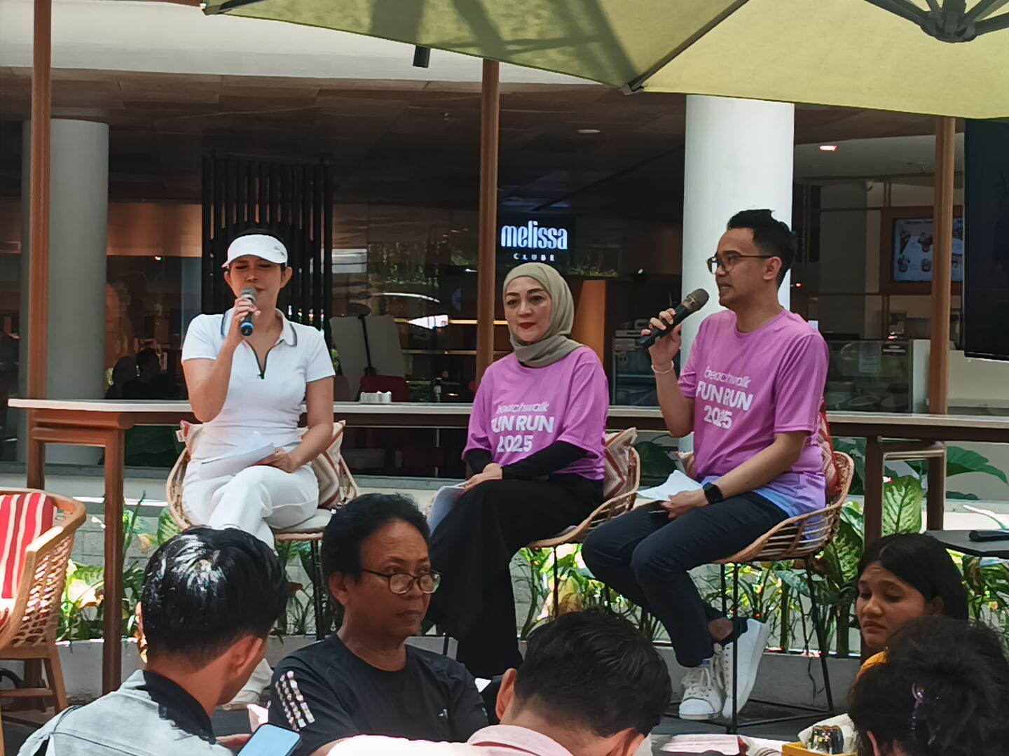 “The 2025 Beachwalk Fun Run carries the theme “Striving for a Healthy and Happy Life,” said Gita Sunarwulan, General Manager of Beachwalk Shopping Center, accompanied by Campaign & Experience Manager Reksa Hartoyo and Campaign & Marketing Specialist Suci Fitria Apriani, during a press conference at The People’s Cafe in the Oasis Stage area, Wednesday, October 2, 2025.