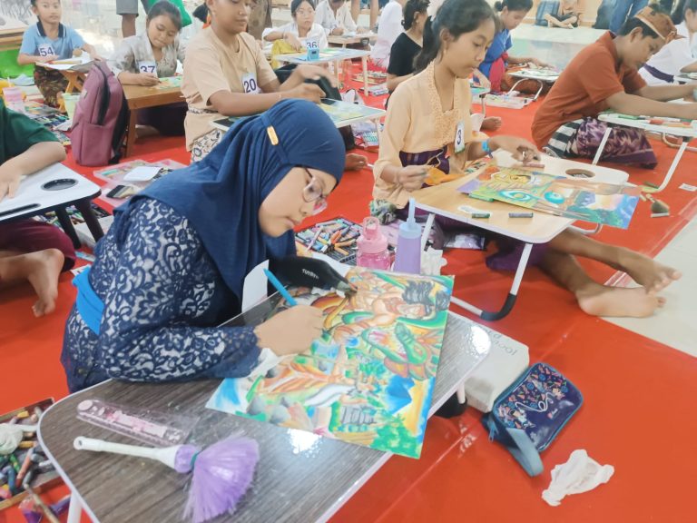 Ketika aba-aba dimulai, siswa SD dari berbagai kabupaten dan kota di Bali ini langsung menggambar tanpa tolah-toleh lagi. Pagi itu, Rabu 4 Pebruari 2026, Lantai 1 Gedung Ksirarnawa, Taman Budaya Bali, terasa meriah dan penuh kreativitas.
